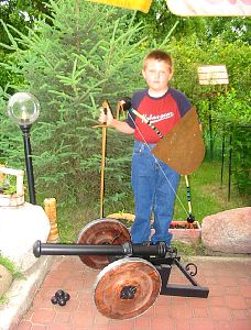 Mam już....z wyposażenia wojskowego: 2 hełmy, 2 czapki wojskowe, 2 miski niemieckie, łuski, odznaki wojskowe i policyjne, stare monety, magazynki, 2 maski gazowe, karabin mauzer, 2 bagnety. Tato odtworzył z ilustracji tarczę rycerza, miecz, dzidę, berło i armatę.